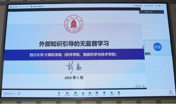 开幕式后,华南理工大学计算机学院院长陈俊龙、中国科学技术大学大数据学院院长陈恩红、西北工业大学自动化学院副院长刘准钆、四川大学教授彭玺分别以《大小模型协同创新技术与应用》《数据驱动智能:大模型性能与数据间的关联定律探索》《多源融合无人机智能目标感知》《外部知识引导的无监督学习》为主题做特邀主旨报告。大会为陈俊龙颁发山东省计算智能杰出贡献奖。