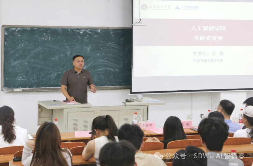 5月29日下午,人工智能学院举办“AI心筑梦,智胜未来”2026届毕业生职业规划与考研指导讲座。华清远见教育集团副总裁李鹏、人工智能技术总监吴昊、高级职业规划师宋学美,人工智能学院党委书记崔江宁、副院长王鲁、全体辅导员,以及2026届毕业生参加活动。
