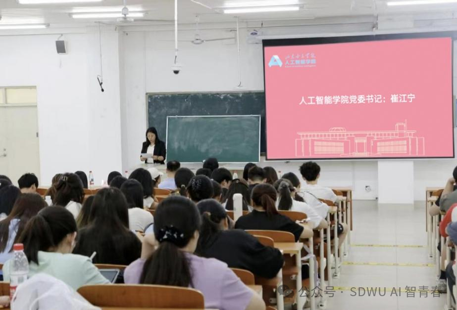 崔江宁介绍了学院的基本情况,并在致辞中指出人工智能正以迅猛态势重塑全球格局。她强调:“人工智能既是国家战略需求,也是年轻一代的时代机遇,学院成立的初衷,就是要培养‘懂技术、有伦理、能跨界’的新工科人才。”