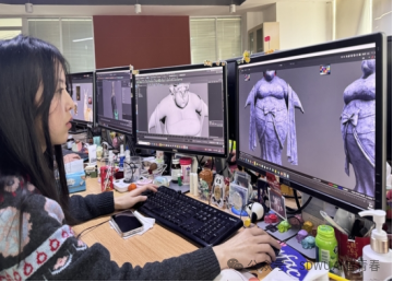 在《哪吒之魔童闹海》的制作过程中,陈璐和王妍参与了“石矶娘娘”、“龙牙刀”、“鹿童坐骑”等重要模型和人物的高精度建模工作。面对影视工业的严苛标准,两位同学展现了卓越的专业素养和高度的敬业精神,“石矶娘娘”的面部表情实现了肌肉群级别的微表情控制,其细腻程度甚至超越部分国际动画团队的同期作品。为了让“龙牙刀”这一道具在金属纹理和动态光影效果上达到完美呈现,她们在项目负责人的带领下,对模型进行了200多次的反复调整和优化。王妍回忆起那段紧张的制作时光时说:“读大学期间的虚拟现实项目实训让我们积累了丰富的实战经验,所以在面对每天16小时的高强度工作时,我们都能从容应对。”影片放映后,陈璐坦言,“看到自己设计的作品在银幕上绽放光芒时,一切付出都值得。”