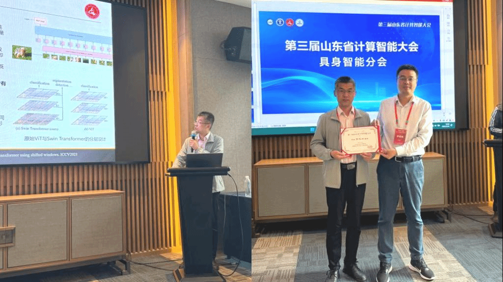 5月24日,第三届山东省计算智能大会在徐州召开,本次大会由山东省人工智能学会主办,中国矿业大学、山东女子学院、济南大学联合承办,汇聚了国内外计算智能领域的顶尖学者、行业专家,围绕人工智能前沿技术与应用展开深度研讨。人工智能学院郭延辉教授、马楠副教授分别做主题发言,院长韩士元教授获2024年度山东省计算智能优秀论文奖。