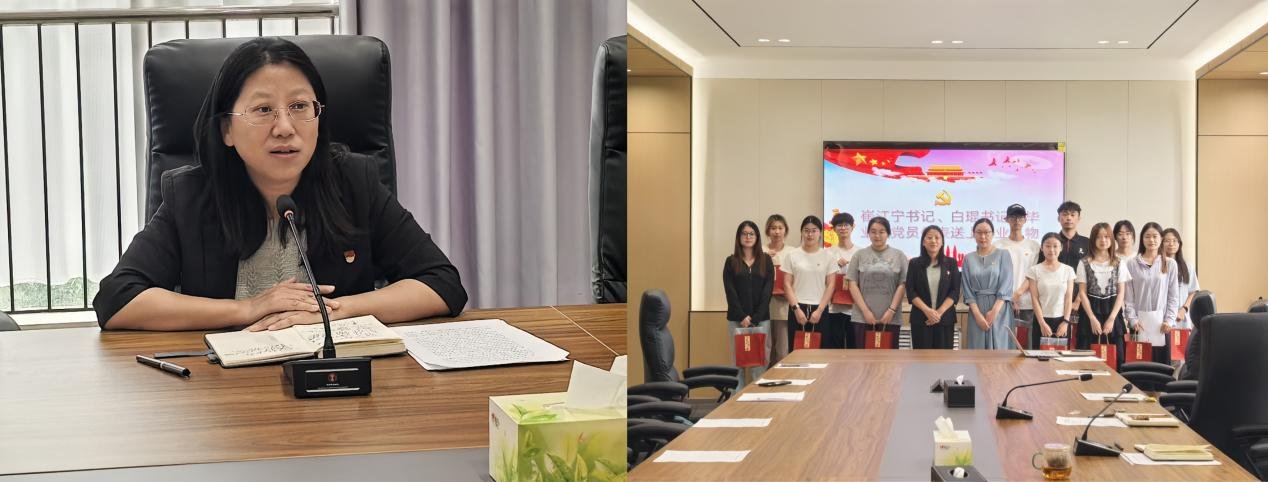 学院党委书记崔江宁在总结讲话中强调,毕业生党员要牢记习近平总书记“奋力书写为中国式现代化挺膺担当的青春篇章”的号召,在科技创新中勇攀高峰,在社会实践中践行使命。她提出三点期望:一是坚定不移,向上生长。树立远大理想,融入科技创新的时代洪流;二是坚忍不拔,向下扎根。要摒弃浮躁,立足实际,从基层做起,从点滴积累;三是坚持不懈,严格自律。要时刻牢记自己的身份和使命,以更高的标准要求自己。活动最后,崔江宁、白琨为毕业生党员代表赠送刻有“清廉如水,初心如磐”的纪念品,勉励他们以廉洁自律开启人生新篇章。