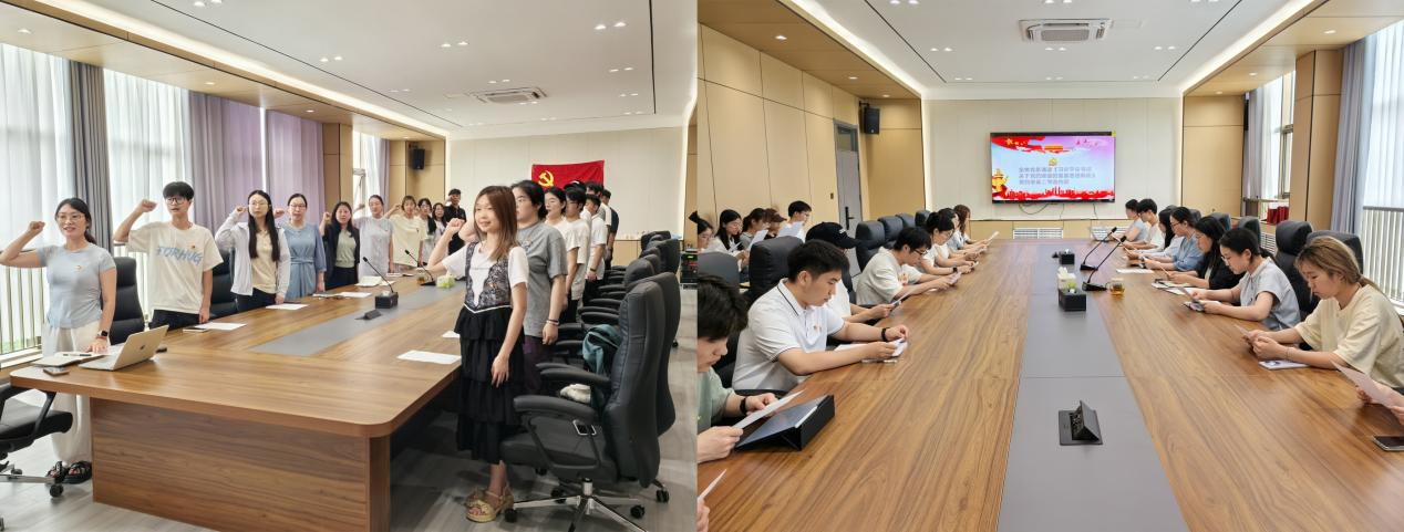 活动在铿锵有力的入党誓词中拉开帷幕。毕业生党员毛欣鹏作为领誓人,带领全体党员面向党旗庄严宣誓,字字千钧的誓言回荡在会场,彰显着毕业生党员永葆初心的坚定信念。随后,全体党员集体学习《习近平总书记关于党的建设的重要思想概论》部分内容,通过原汁原味学习党的创新理论,进一步夯实清正廉洁的思想根基。