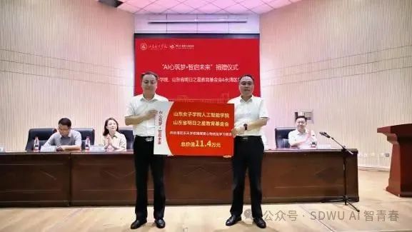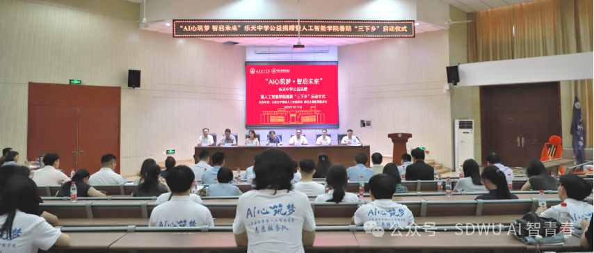 为贯彻党的二十大精神,服务国家教育数字化战略行动,7月17日,学校人工智能学院联合山东省明日之星教育基金会在长清区乐天中学举办“AI心筑梦·智启未来”公益捐赠活动暨暑期“三下乡”启动仪式。山东省政府参事吕善勇、学校党委副书记龙希利、长清区副区长陈楠、明日之星教育基金会发起人张明勇,学校、长清区、山东省人工智能学会相关部门负责同志以及人工智能学院、乐天中学师生代表共计70余人参加活动。
