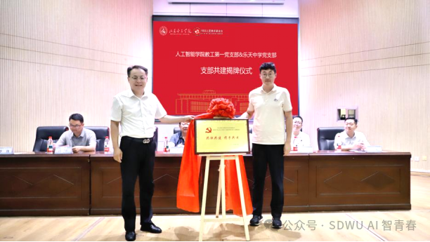 乐天中学党支部书记、校长李伟与人工智能学院教工第一党支部书记孙长乐共同为“党支部共建单位”揭牌。双方此次共建以“资源共享、优势互补、携手育人”为宗旨,旨在探索“党建+教育”新模式,未来双方将在党建共建联动、教育资源互通、志愿服务联动等方面展开深入合作,形成以高质量党建引领教育事业协同的长效机制,描绘党建共建,共同推动教育联动的崭新图景。