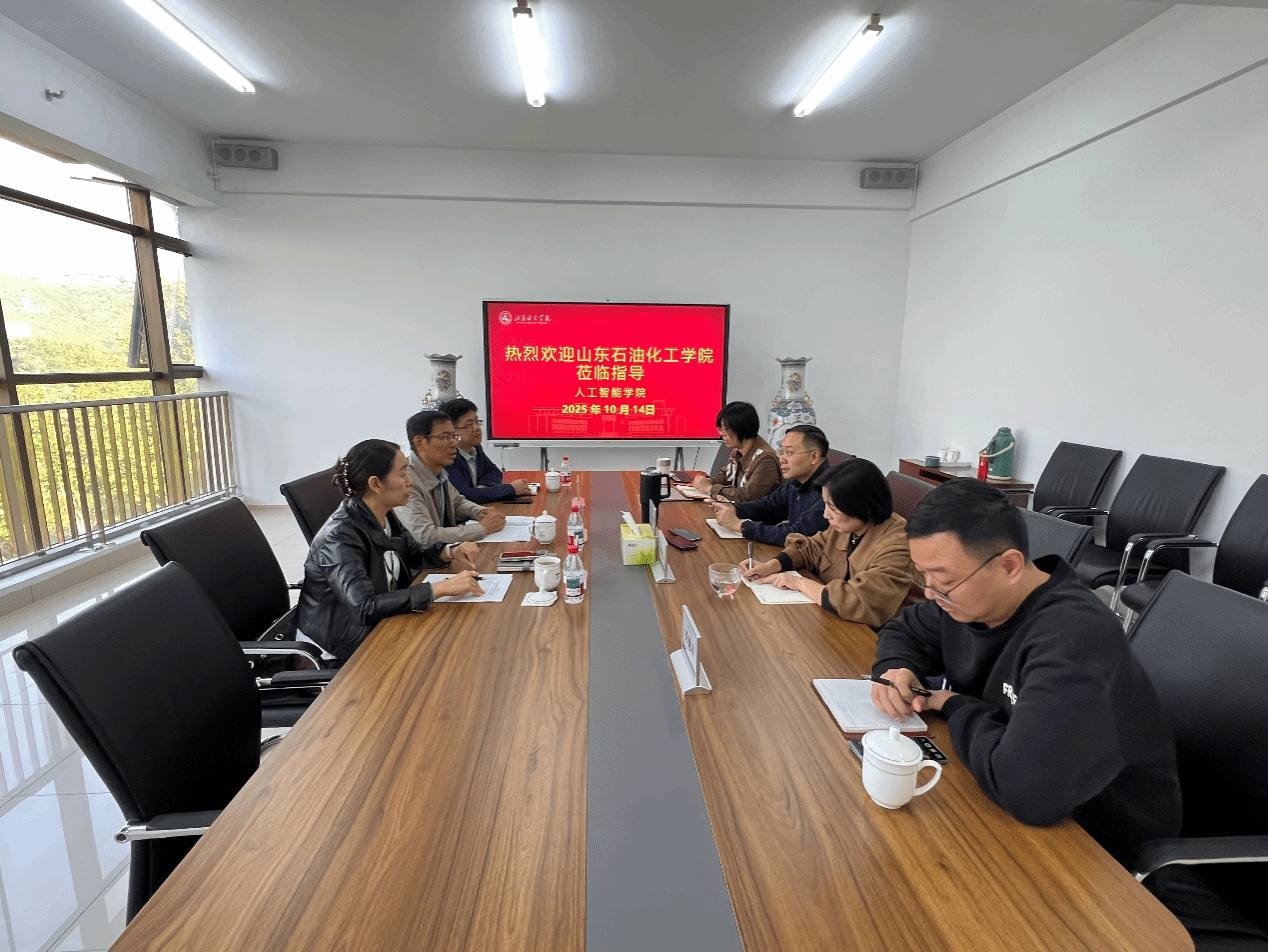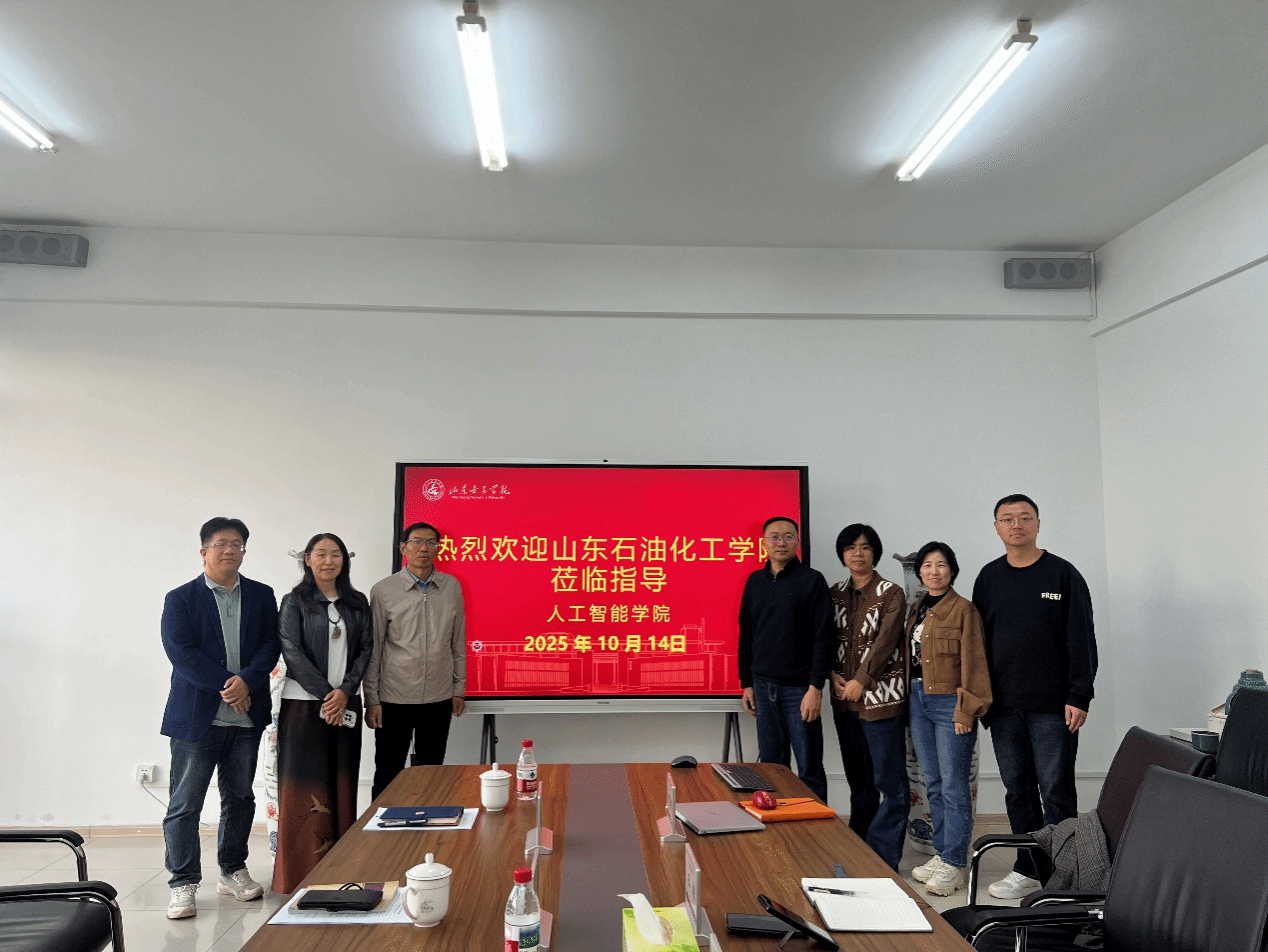 10月14日,山东石油化工学院教育与艺术学院副院长刘青山、设计系主任颜静、副主任刘延斌一行莅临我校人工智能学院考察交流。人工智能学院副院长王鲁、数字媒体技术教研室主任尹百慧及骨干教师仲晓芳、齐德法参会,双方围绕数字媒体技术专业建设、人才培养等议题深入交流。