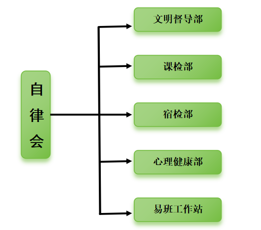 人工智能学院自律会,设文明督导部、课检部、宿检部、心理健康部、易班工作站。